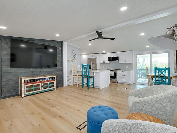 Modern lightingImmaculately renovated interiorPrivate secluded sanctuaryQuartz countertopsPaved cul-de-sacWaterfront elevated homeNew shiplap ceilings