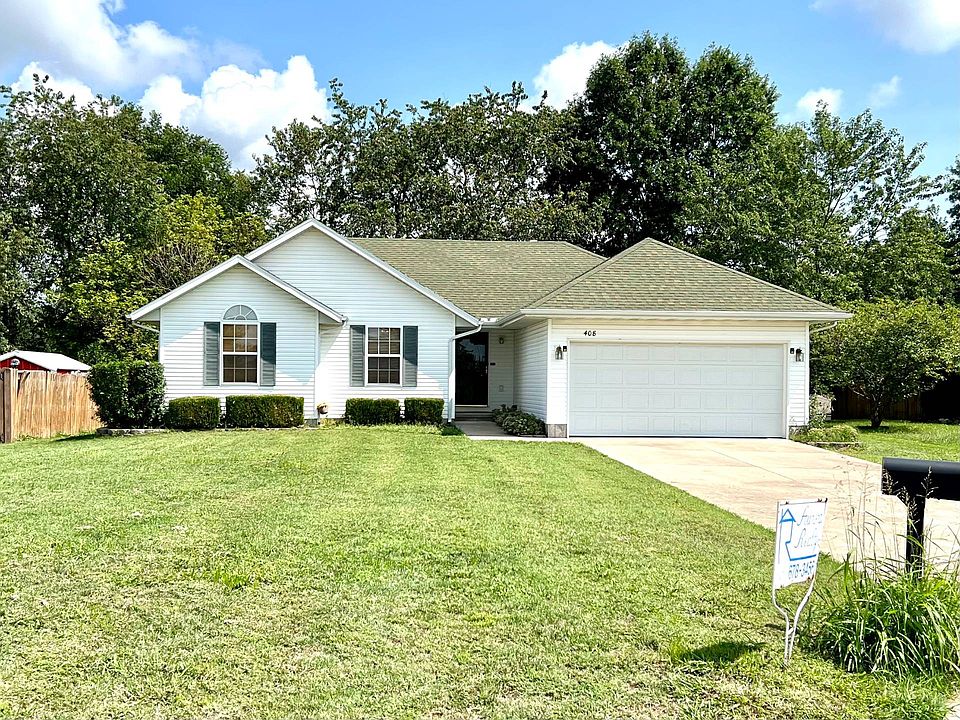 This beautiful home sits towards the end of a culdesac, in a wonderful, quiet neighborhood, close to schools and walking trails. With 1271 sqft, the home has 3 bedrooms, 2 full baths, and a 2 car garage. The cozy living room has a double tray ceiling with a convenient and cozy electric fireplace. Tray ceilings are throughout creating a large and open atmosphere. The spacious yard has mature landscaping, an 8x10 shed, a covered porch in the front, and a large deck in the back, with a fenced-in backyard perfect for your pets. This house has been well-maintained and it shows!