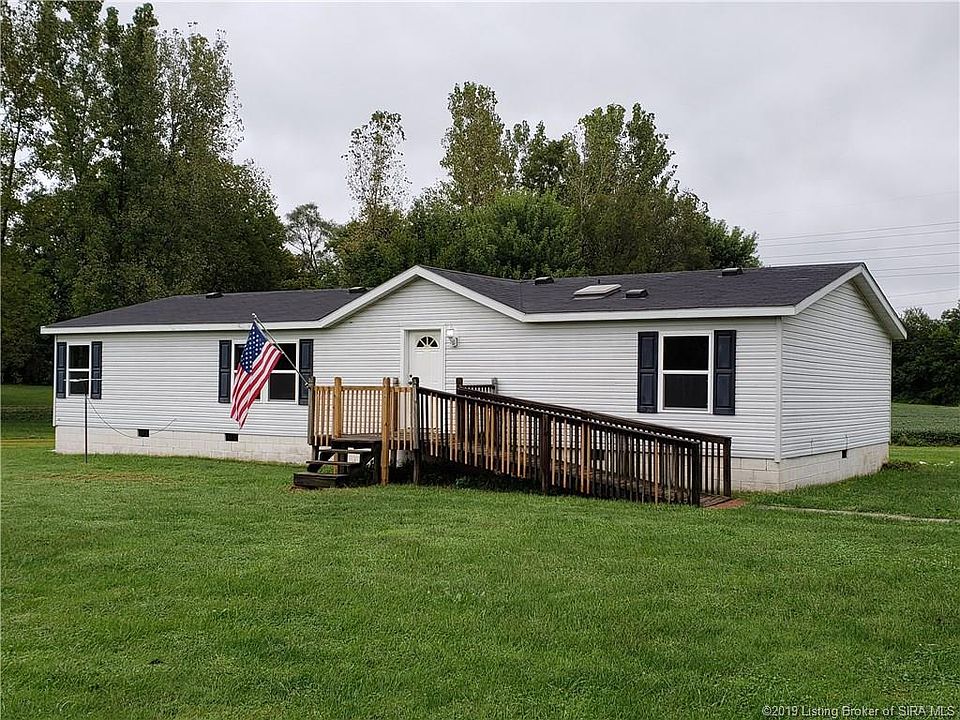 Very desirable Sellersburg location with 1 acre lot. Close proximity to schools, restaurants, shopping, parks and golf course. Manufactured Home with 3 car detached garage. Front and back decks. Open floor plan with Laminate flooring throughout. Appliances include Refrigerator, Range/Oven, Microwave, Dishwasher, Washer and Dryer. Improvements included are NEW WINDOWS INSTALLED SEPTEMBER 2018, new front door, new kitchen cabinets including island with breakfast bar, guttering on home and garage. Seller providing 1 year America's Preferred Home Warranty. Call/text today for your private showing!