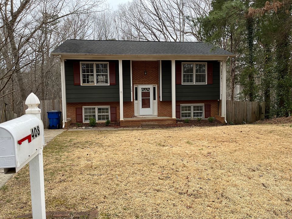 North Raleigh off Six Forks - 3 bed 2 bath single family home with eat in kitchen, living room, den, big utility room, storage, private driveway and fenced yard. Interior flooring and paint is brand new throughout. Tenant responsible for utilities and cable.