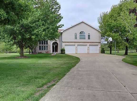 Perfect location and exquisite style make this your ideal staycation home! Situated on 1.6 acres of a marvelous tree lined lot & adjacent to Lake Syd. Greeted with the elegant arched windows & entryway that leads into the living room with vaulted ceilings, exquisite gas log fireplace & hardwood flooring. Dining room offers lighted tray ceiling overlooking the back deck. Modern style kitchen includes island, stainless steel appliances & plenty of cabinet/pantry storage. Upstairs hosts four bedrooms, including the master suite with walk-in closet & stunning master bathroom. Also, a sizable bonus/rec room is perfect for a man cave, exercise space, or theater! Fall in love with the sunroom and two-tiered deck that wraps around the above ground pool, all overlooking the enormous backyard that also offers a paved paito w/ fireplace and playset. The complete entertainers dream home can now be yours! Call today to schedule your private showing!!