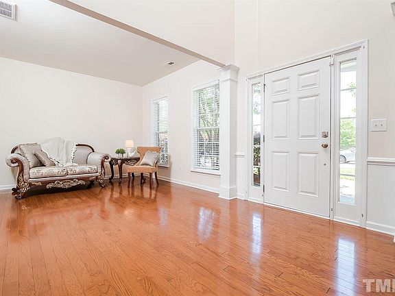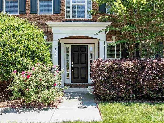 Stunning brick front traditional Home with covered porch. 5 BR, 3 BA incl a 1st floor guest suite with full bath! Dramatic soaring 2-Story FR w/ a gorgeous wall of windows! And gas log fireplace, for instant romance. Open Kit w/plenty of cabs and workspace! Gorgeous quartz countertops and S/S appliances! Private lot w/tree buffer! Incredible AMBERLY Amenities! Swim team, pool w/slide and spray ground, indoor basketball, volleyball, walking trails, fitness center. Walk to shopping! Convenient to RTP & I540