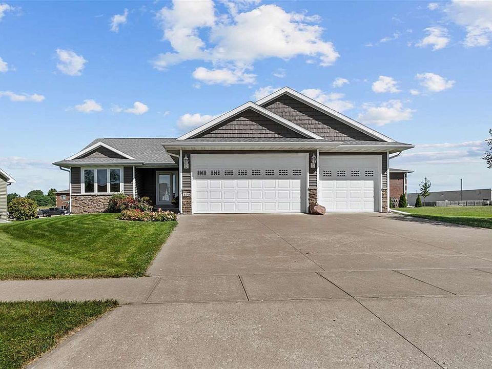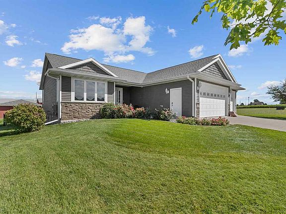Welcome to this amazingly beautiful home where comfort and luxury meet! From the moment you step inside, you'll feel pampered in every room. The inviting living room features a stunning modern ember electric fireplace, perfect for cozy evenings. The gorgeous kitchen is a true masterpiece with handcrafted custom cabinets and high-end finishes. The dining area seamlessly flows into a bright and airy 15 X 12 sun room, offering a perfect spot for relaxation or entertaining. The lower level boasts a spacious family room, a convenient bathroom, and ample storage space for all your needs. For added convenience, the main level includes a dedicated laundry room. The 3-car attached garage provides plenty of room for vehicles and gear, while the large deck and patio offers a wonderful outdoor space to unwind. Location is just a 15 minute drive from Iowa City and 20 miles to Muscatine, this home offers a peaceful retreat with easy access to city amenities. Truly a dream home, inside and out! Lone Tree is home to a K-12 school district, recently rated "High Performing" in the elementary , putting it in the top 12% of schools in Iowa. Middle and High school surpassed the state average while measuring graduation rates and readiness.