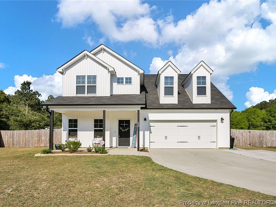 Stunning 4 bedroom home that will wow you as soon as you walk up - from the front porch, black columns, black gutters and the contemporary design, you do not want to miss out on this! Open layout includes white kitchen w/island, granite, stainless steel appliances, and custom herringbone backsplash. Upgraded lights fixtures and top-notch paint job. Gorgeous luxury vinyl planks in formal dining, kitchen, breakfast noon, living room, laundry, and half bath. Under the staircase, you will find a cozy spot for your fur friends. Owners’ suite is located on first floor, and it has a large walk-in closet. En-suite bath is spacious and a place to relax after a long day. All 3 other bedrooms and a full bath are located on the second floor. Fully fenced backyard-great for BBQ, kids and fur babies - and private patio and a fire pit. Move-in ready!