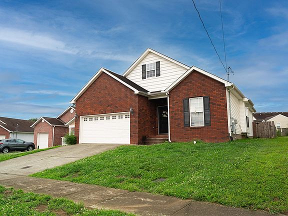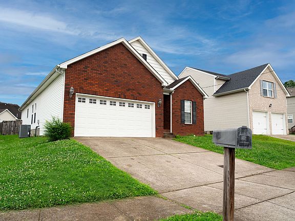 This beautifully updated 3-bedroom, 2-bath home is move-in ready! Step inside to find a spacious layout featuring hardwood, laminate, and carpet flooring, fresh interior paint, and thoughtful upgrades throughout. The eat-in kitchen boasts both stainless steel and classically-styled appliances—including a brand-new refrigerator—and flows into a formal dining room perfect for entertaining. Relax in the living room enhanced with surround sound speakers, or unwind on the brand new back deck overlooking the fully fenced backyard, outdoor speakers, and a convenient storage shed. Enjoy extra storage and parking with a 2-car garage, plus Google Fiber already installed. Newer split HVAC (5 yrs old) with Nest Thermostat and wifi functionality. Newer hot water heater (3 yrs old). Additional features include a new garbage disposal, new back door, and a washer & dryer that convey. Ideally located just 30 minutes from Downtown Nashville and Opry Mills, 20 minutes from BNA Airport, 11 minutes from Tanger Outlets Nashville, and only 5 minutes to nearby grocery stores and essentials, and the closest elementary school is only a short walk away! Move-in ready with all the extras—this home is a must-see!