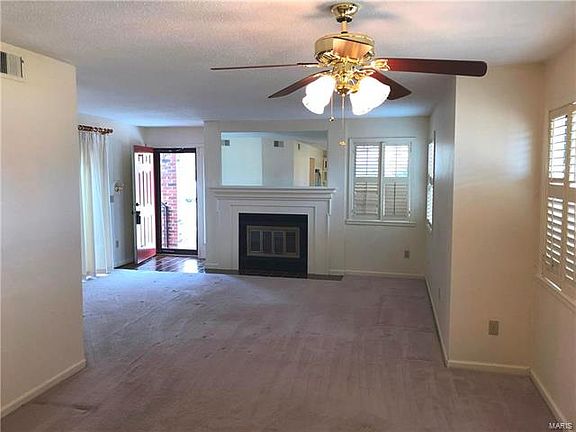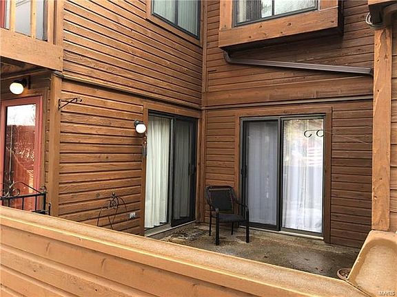 Weldon Spring 1 bedroom, 1 bath 853 sq ft condo in the desirable Chapter One neighborhood. This end unit offers side windows view of wonderful green space & common area looks out on your own park like setting. Brick and cedar plank exterior, wooded setting on well maintained grounds. Living room features a wood-burning fireplace. Kitchen with ceramic tile flooring All appliances stay. Spacious master bedroom with walk-in closet and access to patio. Additional features include: laundry in-unit, 1 car over sized garage(25 x 15), 2-10 Home Warranty. Francis Howell School District. Subdivision amenities include: Lake, community pool, walking trails, tennis courts, & a club house. Located just minutes from the Chesterfield Valley and Katy Trail. Easy access to Hwys 64/40 and 364. One year 2-10 Home Warranty offered to Buyer at closing.