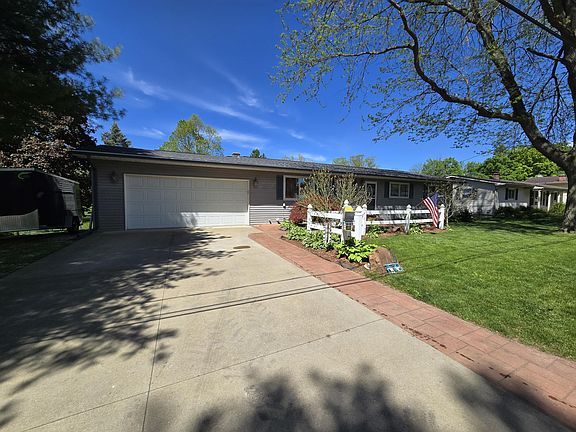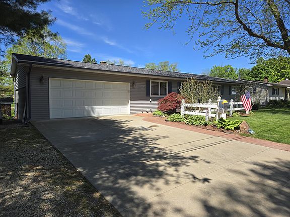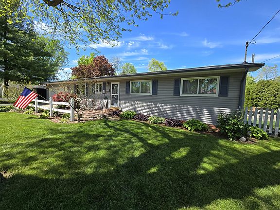 Just listed! This immaculate 3-bedroom 2 bath ranch has not been on the market since 1995. The owners have taken exceptional care of this home. Home includes: new roof in 2024; furnace, central air and water heater new 4 years ago; stamped concrete driveway and front patio; tile shower; newer appliances; new carpet; freshly painted interior; home is double drywalled; gas insert fireplace with remote and stone surround; partially finished walkout basement with custom hardwood decor.; Pella sliding glass doors to large deck; water softener; double closets in primary bedroom; 2 tv's; tile floors; and more! Outside features a newer 28' x 40' pole barn with 8' overhead door, 12' ceiling height, concrete floors and 10' x 30' covered patio area. Back yard is beautifully landscaped and fenced with 8' x 16' bridge over creek. Also, a 12' x 16' shed with loft area. All within close proximity of schools and shopping. This property is a must see. Just move your furniture in and relax. Call Rick Spaulding at Advanced Track Real Estate LLC (269)420-1966.