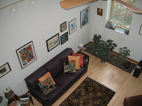 Stunning, oversized 2 bed, 2 bath in converted schoolhouse. Soaring ceilings, huge windows, tons of natural light. Owner moving out of state after extensive renovation. He cannot bear to part with this gem so it is now available to rent. Can be offered furnished to the right individual who will recognize and take care of high-end furniture. Magazine-worthy kitchen and baths. Sophisticated, white high gloss kitchen cabinets, grey quartz counters, SS appliances. Tiled shower with frameless door, quartz counter. All the colors and finishes you see on HGTV. Open entertaining floor plan. One BR, full bath and laundry on the main living level. Large, lofted Master BR with en-suite bath is on the 2nd floor. Numerous closets, hardwood floors, 2 deeded parking spaces. Adjacent to a park with a playground and basketball court.