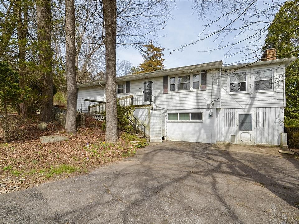Escape to country living and build equity at the same time! Affordable 3 bedroom Raised Ranch home nestled on a third of an acre, corner lot with a 2 car detached garage. Inside, you are greeted by the living room with hardwood flooring, eat in kitchen, and family room filled with natural light, hardwood floors and a wood stove. On the opposite side of the home there is a full bath, and three bedrooms, one is a walk through to a spacious master bedroom with a large walk in closet. The lower level has a second family room, laundry room, utility room along with an enclosed porch with outside ground level access. Convenient location within minutes to Rt 33 and 209. Property is being sold as-is.