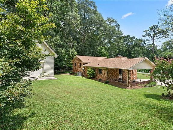 The oversized attached brick carport provides convenient covered parking, while a detached backyard shop offers even more storage or workspace. Above the shop, a brand-new staircase leads to a bonus room—ideal for a home office, craft space, or playroom.