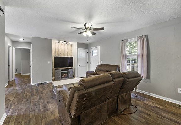 Welcome home to this charming 3-bedroom, 2-bath residence set on a peaceful 0.61-acre lot surrounded by mature trees. A welcoming front deck invites you inside to an open-concept living and dining area, filled with natural light and perfect for everyday living or entertaining. The kitchen features white cabinetry, stainless steel appliances, and direct access to the back deck. The primary bedroom offers a private retreat with an en-suite bathroom accessible through stylish sliding barn doors. Two additional bedrooms provide comfort and flexibility for guests, a home office, or hobbies. The laundry room is conveniently located off the kitchen for added functionality. Outside, enjoy the spacious yard complete with a firepit and storage shed, providing plenty of room to gather, garden, or simply unwind in a serene setting. This home perfectly combines modern convenience with a peaceful country feel, ready for you to move in and make it your own. Up to 1% lender credit on the loan amount w