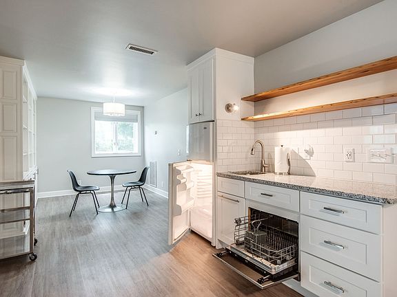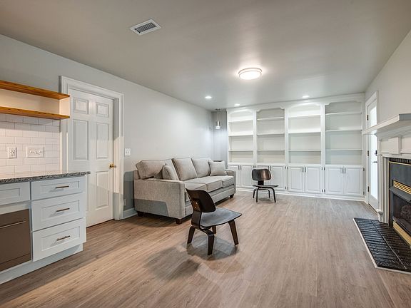 One level no stairs to this private 1br apartment in wonderful neighborhood. All utilities included. Open floor plan with LARGE closet. Beautiful cabinetry & alternative wood floors are throughout and no carpet. Private covered patio. All renovated and updated. 20 ft of built-in bookcases. Separately controlled HVAC. Great parking. Washer and Dryer included. Must see!