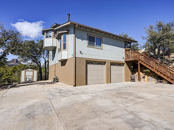 PENDING TAKING BACKUPS!!! Please no Realtors or Investors. Please respect this request. This is a Funky, Beautiful, Unique 3 level, 2952 sq. ft. home at the top of the hill, end of the street with views of the mountains and Thumb Butte. Located 5 minutes from downtown this beautiful 1979 built home is a one of a kind. The lower level has a 2 car garage with built in work bench area and built in cabinets. There is a door that leads to the 600+ sq. ft guest room, in-law quarters, man cave or whatever your hearts desire for this space. The space includes a 3/4 bath, gas fireplace heat, bar sink, refrigerator, room for micro and a French door back entrance with views of Thumb Butte. The main level features the main entrance (upstairs either by front entry stairs or garage stairs) into the Kitchen with granite and tile countertops and Knotty Alder cabinetry including a large pantry cabinet. The Living room features a vaulted ceiling, a Dutchwest Catalytic Combustor wood burning stove and stairs to the upper 700+ sq ft Master vaulted ceiling bedroom. Off the hallway on the main floor is a large bath with a 2 sink vanity and Knotty Alder cabinetry, a laundry room with a door to the deck and a utility sink. 3 bedrooms with ceiling lights with fans and mirrored sliding closet doors. There is a Knotty Alder linen closet at the end of the hall. On the Upper level the Master bedroom features one of 2 large walk-in closets. The Master bathroom features a 2 sink vanity and a deep large tub and has the 2nd walk-in closet. Remember there are plenty of stairs to keep you in shape!!! The outside features a deck the length of the house. The deck is very private with boulders as a natural barrier to your neighbors. Mature natural well kept and Firewised vegetation. Trees such as pine and oak. There is beautiful landscape rock work and pathways to enjoy your yard from. There is a side shed for your tools or large enough for a workshop. The lot size is .53 of an acre with a large/huge dog run in the lower yard area. No HOA and room to park an RV.