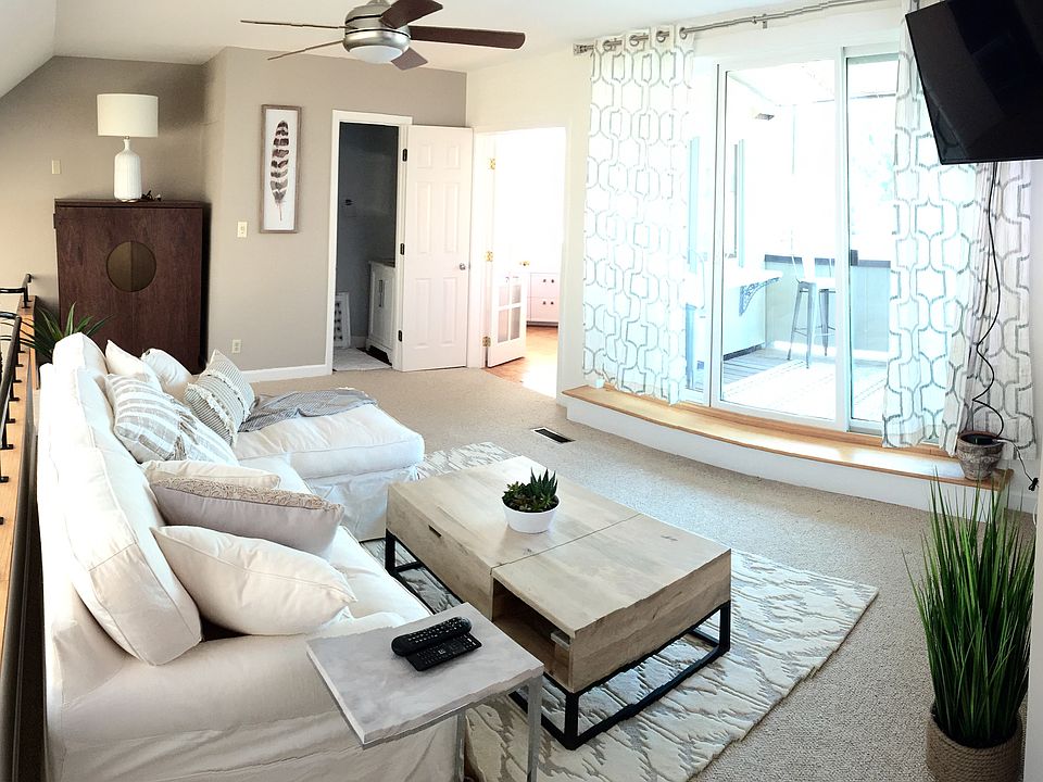 Spacious luxury 3 bedroom penthouse with remarkable indoor/outdoor spaces. Fully furnished, perfect for an executive rental. Turn-key living with monthly parking included steps away in the Market Street Garage. HOA fees, gas, and water also included. North-side Downtown Mall. Master Bedroom includes an adjustable king bed and a balcony. Second bedroom has a queen sized bed and balcony. Third bedroom loft has pullout sofa bed and 1/2 bath that opens onto roof-top covered veranda with local and distant views. Great location between the Charlottesville Police Station and Market Street Market (the downtown grocery store). One block to court square and two blocks to SNL.