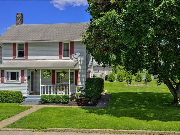 COLONIAL CHARM & MODERN CHIC IN ZELIE! Well Maintained and Tastefully Updated Home on TABLE TOP LEVEL DOUBLE LOT. Welcoming Front Porch & Rear Porch Overlooking Yard. SPACIOUS ROOMS & LOTS OF WINDOWS for Natural Light. ENTRY with Space for Wraps & EXPOSED BRICK in Master Bedroom. ONE-CAR DETACHED GARAGE + CARPORT. Stamped Concrete PATIO & FIRE PIT. CURRENT OWNER IMPROVEMENTS INCLUDE:Chimney Rebuild 2019; Lennox Hi-Eff Furnace 2018; 50 gal. Water Heater 2018; Updated Lighting 2018; Trees at Side Yard 2018; New Stainless Kitchen Appliances 2017; Stamped Conc. Patio 2017; Trees at Rear of Lot 2017; New Carpeting 2015; Repainted Interior 2015. CONVENIENT LOCATION: 15 Min to Cranberry Mall/Route 79/Turnpike; 33 Min to Downtown; 39 Min to Airport; 18 Min to Moraine State Park.
