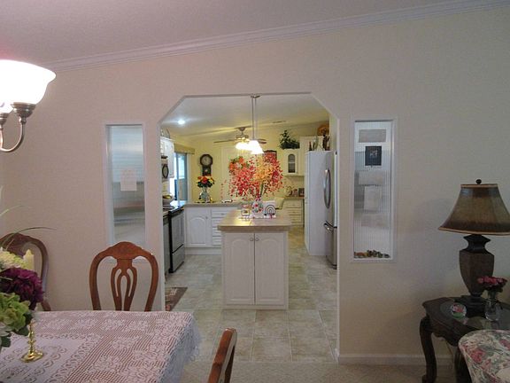 Meticulously maintained 2011 Nobility Erica located in Beautiful Cypress Creek Village a Premier 55+ Community that offers the 80/20 rule! This home offers 1782 square feet of interior space and with the addition of the 16 x 14 Year Round Florida room, totals 2006 square feet of space to enjoy living. Contact tanya@mobilehomegirl.com or visit www.mobilehomegirl.com LIVING ROOM/DINING AREA 27 x 15' 8 EXTRA LARGE Living Room Opens to Dining Area. Carpeted Flooring, Ceiling Fan with Light, Chandelier in Dining Area. Included: Table with Leaf and 6 Chairs KITCHEN Very Large Eat-in Kitchen with Beautiful White Cabinetry, Beautiful Island, Easy to Clean Vinyl Flooring. Double Sink with Sprayer overlooks the carport, Large Pantry, and Office Nook in the Corner. Stainless Appliances Include: Smooth Cook Top Range, Built-in Microwave, and Dishwasher. Side-by-Side Refrigerator is Negotiable BREAKFAST NOOK IN KITCHEN 12' 8 x 9' 10 Beautiful breakfast Area. Built-in Corner Cabinetry is Perfect Spot for Your Computer. MASTER RETREAT 27 x 11 Extra Large Master Retreat with Berber Carpet, Lighted Ceiling Fan, 27' Long with Plenty of Room for a Large Sitting Area. Large Walk-Through Closet Large His and Her Baths! Bath on the Right Features a Large Garden Tub. Bath on the Left Features a Walk-in Shower. GUEST ROOM (1) 12' 8 X 10' 8 Berber Carpeted Flooring, Lighted Ceiling Fan, Large Walk in Closet measures 5' 8 x 4' BATHROOM In the Middle of the Guest Rooms is a Spacious Full Bath Featuring a Perfect Size Vanity, Mirrored Medicine Cabinet, Tub/Shower Combination, and Vinyl Flooring . Large Linen Closet in the Hall GUEST ROOM (2) 12' 8 X 10' 6 Berber Carpeted Flooring, Lighted Ceiling Fan, Large Walk in Closet measures 7' 10 x 4' 3 LAUNDRY ROOM Large Laundry Room Located off Kitchen. Nook Behind Door is the Perfect Space for additional storage. Speed Queen Washer and Estate by Whirlpool Dryer Included. Cabinets Above to Keep Cleaning Supplies. YEAR FLORIDA ROOM 14 x 16 Perfect Space to Relax and Enjoy the Your Coffee in your Year Round Florida Room With a Ceiling Fan. Included: 2 Loveseats, Coffee Tale and End Table ATTACHED SHED 12 x 18 Great place to Store all your Extras with shelving! Wash basin, work bench and pegboard! CYPRESS CREEK VILLAGE Cypress Creek Village is a Gorgeous Gated Community in a Country Setting. Located in South East Winter Haven just minutes away from HWY 27 Makes for Easy Access to Orlando. The Daily, Weekly and Monthly Activities are held in the Residents Club House. You will Love the Large Heated Swimming Pool and Spa. Additional Features: Onsite State of the Art Work Out Facility, and a Gorgeous Billiard Room, and Shuffleboard. One of Winter Haven's Golf Courses is Right Across the Street! You will Love Living Here! There is Always Something Going on at the Club House and the Grounds are Very Manicured! All listing information is deemed reliable but not guaranteed and should be independently verified through personal inspection by appropriate professionals. American Mobile Home Sales of Tampa Bay Inc. cannot guarantee or warrant the accuracy of this information or condition of this property. Measurements are approximate.The buyer assumes full responsibility for obtaining all current rates of lot rent, fees, or pass-on costs associated with the community, park, or home from the community/park manager. American Mobile Home Sales of Tampa Bay Inc is not responsible for quoting of said fees.