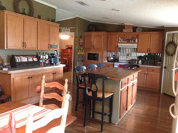 Absolutely beautiful, spacious mobile home built in 2005 features 4 bedrooms, 2 full baths, wide hallway that accommodates desk area, wood-burning fireplace in the family room, many built-ins for storage and displays. The bright kitchen utilizes a butcher block island with storage and modern appliances. French doors in the dining room provide lots of light and access to the back porch. The master bath offers a garden tub, double sinks, walk-in closet and separate shower. This lovely home sits on 2.5 acres that is located on a dead-end road for privacy and has an open pole barn for storage.