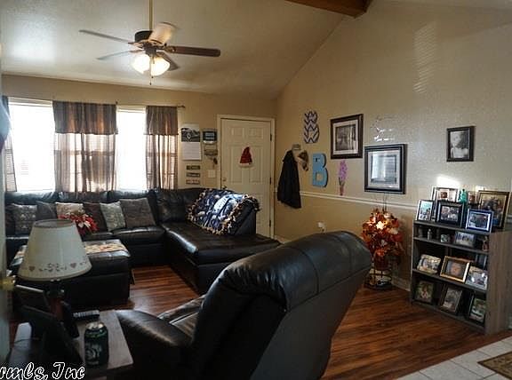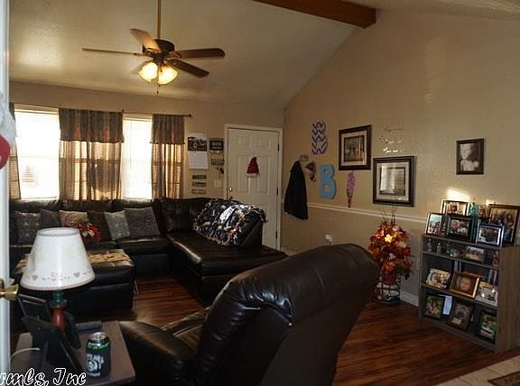 Cute 3/2 house the very open floor plan, vaulted ceiling in the living room, kitchen has a lot of cabinets, split floor plan with a great size master bedroom and walk in closet with built ins. 2 bedrooms are good size both have nice closets. There is chair rail molding and a back door out of the kitchen to a nice back patio. House has a great back yard and sits on more than a 1/2 acre that has a lot of trees and shrubs planted on it and a great storm shelter with a bench inside. House to be sold as is.