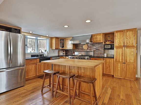 If you are looking for long range views, expansive living space and sprawling acreage, look no further! This stunning post and beam colonial sits on 20 acres of field and forest with established trails. The spacious kitchen features an oversized Viking range and custom maple cabinets. The living area offers a spacious, bright space to relax and soak in the sun from the large windows that perfectly frame the backyard in view. Timeless wide plank wood floors cover the space keeping the historic charm. The first floor offers numerous intimate gathering spaces including a den with a woodstove insert, a likely library or formal dining area with a fireplace and a bright sitting room that leads out to the cedar deck complete with hot tub--great for year-round enjoyment. Continuing upstairs you will find the primary bedroom with cedar walk in closet and a new bathroom with oversized shower and radiant floors. Three more bedrooms and a full bath complete the incredible upstairs living space. From the backyard you are able to access endless outdoor adventures. Enjoy a round of disc golf then camp under the stars on the raised tent platform while enjoying the sound of the stream. Access to hiking, biking, snowmobile and skiing trails in your own backyard. In addition, you will find a fenced in pasture and barn, chicken coop, beehives, garden shed, and large detached two car garage with woodshop. Located 30 minutes to Manchester, 30 minutes to Okemo Mountain and 3.5 hours to Boston