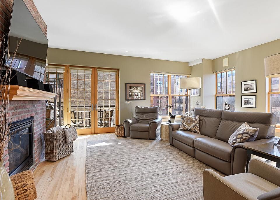 Light and bright corner unit. Gourmet kit w/top of the line appliances. Hardwood floors, brick surround fireplace, custom closets & cabinets. 3rd BR currently used as office. Premier condo building in the heart of the North Loop Neighborhood. Blocks from the Mississippi, shops, restaurants and more!
