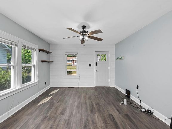 Move-in ready in the heart of Elsberry! Enjoy historic charm with some fresh and modern updates in this 2 bed / 1 bath home. Updated vinyl flooring throughout the main floor. Updated light fixtures, fresh coat of paint and newer vinyl windows. Spacious dining area with a coffee bar/drop zone with tiled back splash and butcher block counter top that transitions into the kitchen. Built-in shelving, granite counter tops, and updated fixtures throughout. 2 spacious main floor bedrooms and an overhauled main floor bath. New shower surround and trim kit, vanity, and all the fixins! Enjoy a large oversized rear covered porch for summer entertainment and bbq's. Spacious yard with alley parking/access. Full basement with access from inside the home and out. Newer HVAC and roof and storage shed to top it all off! Don't let this one slip away. Schedule your private showing today!