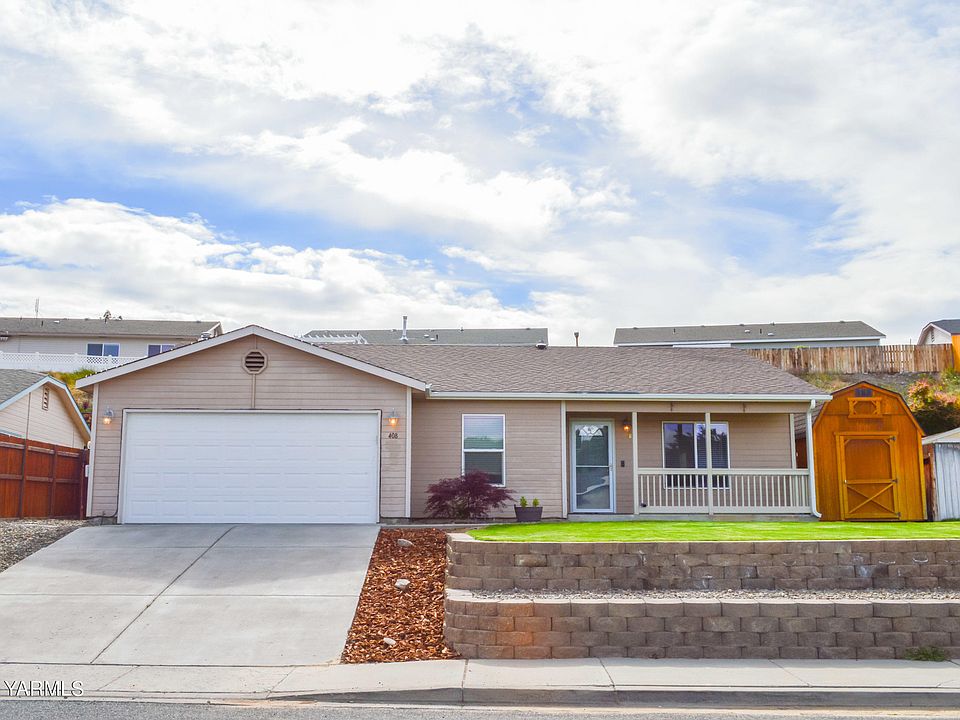 Wonderful West Valley home with new flooring throughout, fresh paint inside, new bathroom vanities and fixtures. Open concept kitchen with new countertop, backsplash and newer stainless-steel appliances. The kitchen opens to the dining and family room with a sliding glass door that opens to the full length covered patio. Master bedroom with walk-in closet. Laundry room just off the kitchen with cabinetry. Fenced back yard with long hours of shade for your enjoyment. Nice storage shed and underground sprinklers.