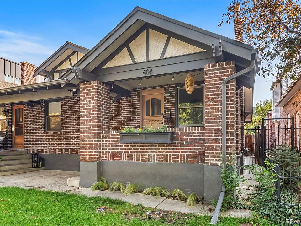 Rare Country Club Half Duplex home in Bromwell district. Open floor plan: 3 bedroom (3 conforming/1 vaulted finished loft) and 2 baths (full and 3/4) offering modern amenities and classic appeal. Open main floor flooded with southern light. Custom built, imported solid Dutch entry door. Hard surface flooring throughout. Maximized closets in each bedroom. Cast iron gas fireplace insert on the main level surrounded by traditional built in shelving. Lofted master suite (high ceilings and separate mini split heating and cooling). Basement includes an egress window, walk-in closet, living room, laundry and private bath. City parking solved by three off-street parking spaces (one garage space, one uncovered in rear off street, and one flex private/enclosed double gate space in the rear yard). Additional storage above shared garage. 3 patios: front covered patio (swing included/stored in lofted garage storage), and two tiered uncovered rear patios (Trex and flagstone). The front yard has grass with a new sprinkler system, and the rear yard includes turf with a separate dog run and a fruiting pear tree. Ideal location within a few short blocks or less to Bromwell School, Cherry Creek walking paths, Denver Country Club, Cherry Creek bike path, Cheesman Park, and the Botanic Gardens. New roof (July 2024), refinished wood floors, upgraded gas line, oversized on-demand water heater, rare nearly all cast iron waste line (cleaned June 2024), cleaned furnace (June 2024). Quiet pristine, mature tree lined block.