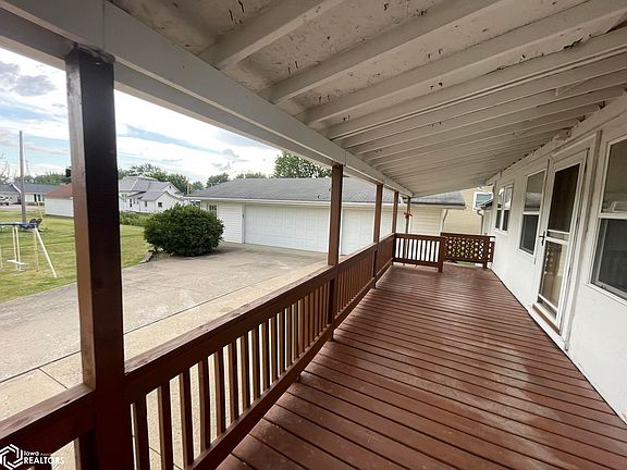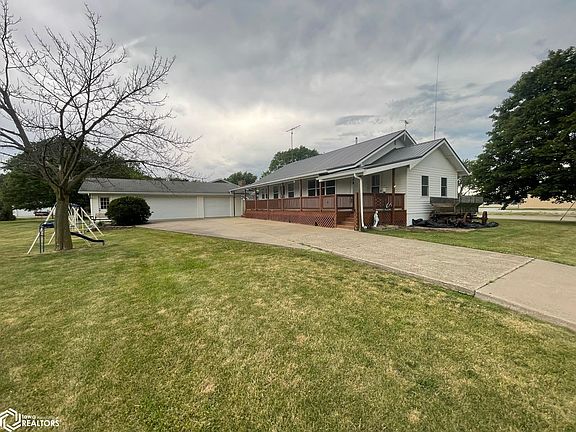 Discover this charming two-bedroom, two-bathroom home in the heart of Moravia, Iowa. Perfectly designed for comfort and functionality, it features a spacious open-concept kitchen, dining area, and living room, complete with beautiful wood built-ins. A versatile bonus room offers the ideal space for an office or playroom. Outside, the property boasts a large covered deck, perfect for relaxing or entertaining. The expansive three-car detached garage, accessible via a durable concrete driveway, provides ample space for vehicles and storage. Located in a well-maintained neighborhood, this home is close to local amenities, parks, and schools. Whether you’re a family, retiree, or looking for a peaceful community, this home is a perfect fit. Embrace the blend of small-town charm and modern convenience in Moravia. This gem is ready to welcome you home! Corner lot next to Moravia Community School.