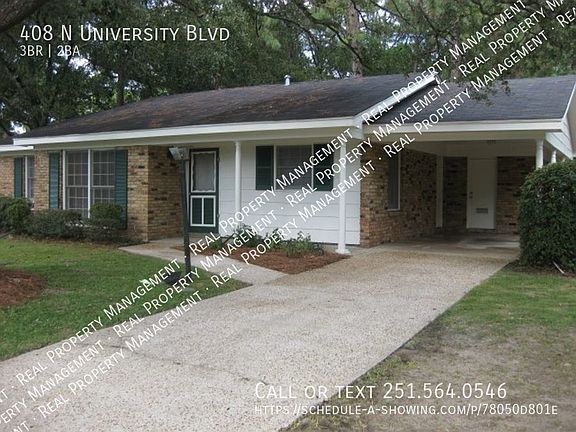This 1232 square foot single family home has 3 bedrooms and 1.5 bathrooms. This home is located at 408 N University Blvd, Mobile, AL 36608.