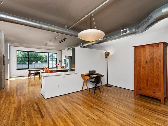 This beautiful loft is located in the McKenzie building in the heart of the Pearl District. The condo features an open floor plan with high ceilings and hardwood floors throughout, spacious living room, modern kitchen with stainless steel appliances + quartz countertops, private balcony, walk-in shower, and in-unit laundry. The building offers a secure entry, secure parking, storage and views of the city. Conveniently located near shops, restaurants, and the streetcar, making it the perfect place to call home. The unit was previously a two-bedroom and could be easily converted back. Storage unit and parking spot included.