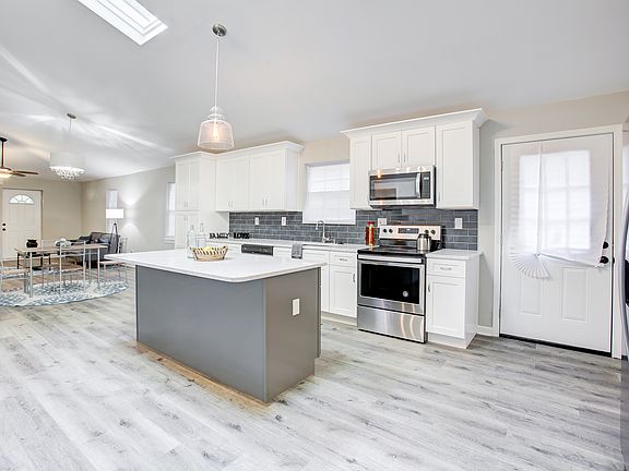 - Kitchen Features: Eat-in Kitchen, View to Family Room, Stone Counters, Kitchen Island, Cabinets White