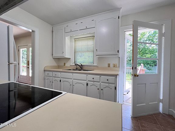 AIRY, CLASSIC RANCH, two bedroom, one spacious bathroom, with refinished original hardwood floors, ceramic tile flooring in kitchen and bath, custom cabinets, wood burning fireplace; In the MONTA VISTA subdivision, just 1/2 mile from Greeneville High, Niswonger Performing Arts Center and Walters State Com. College. Two-car basement garage (23 x 20') that opens onto shaded backyard. A large outdoor deck and Italian wood-burning oven will entertain family and guests within quiet downtown R1 zoned neighborhood. Metal roof. Property is SOLD ''AS IS/WHERE IS.'' Electric, water, gas are PUBLIC. • Limited Home Warranty for one year. ###