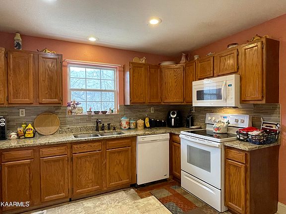 Looking for a cozy home in the heart of Jacksboro? Look no further! This home is located just minutes from town with gorgeous mountain views off the large covered front porch as well as the back double deck. When you walk in this split foyer home you're greeted by the spacious living room at the top of the stairs. Off the living room is the kitchen with granite countertops and lots of solid wood cabinets. The kitchen leads into the large formal dining room with double doors leading to the back deck. Master bedroom has a large walk-in closet and a nice bathroom with granite vanity tops. The other two bedrooms are located on the opposite side of the hall as the Master with a full bathroom down the hall to share. Downstairs you'll find a great sized den/recreation room perfect for any hobbies with a 1/2 bath (enough room to add a shower). The downstairs also leads to a large 2 car garage for storing all your items, collectibles, etc. (no paved access). This area adds all the storage space you would need. This one is a must see. Call today for your private showing. Buyer to verify any and all information.