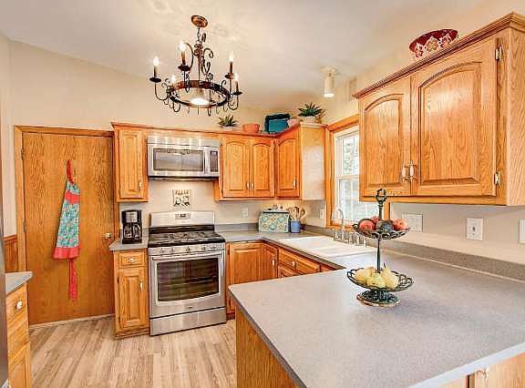 Incredible flexibility in this updated, move-in ready tri-level home with a complete extra lower level living area including a 2nd full kitchen, bedroom and full bath and 3-season room that opens to back yard. Main level includes living room w vaulted ceiling and natural fireplace, main kitchen with newer SS appliances and dining area that opens onto HUGE composite back yard deck. Upper level has master bedroom, 2 other bedrooms and 2nd full bath. Home sits quietly at the end of dead end road (next to nature preserve) on half an acre lot with fenced in back yard, fire pit, storage shed.