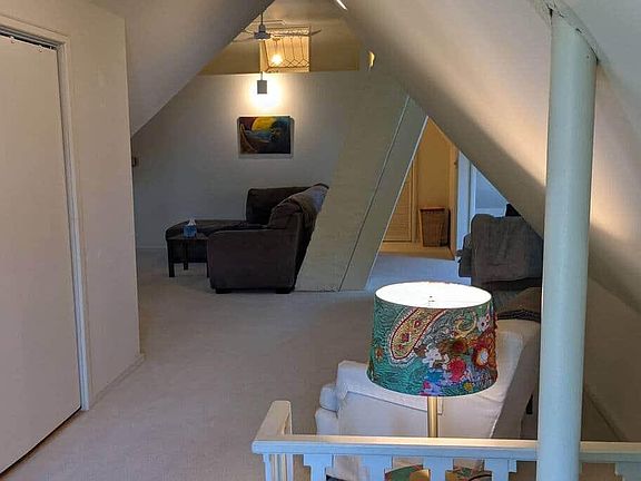 This fun split-level apartment is on the second and third floors of a historic home right in the heart of downtown Warren. Featuring 2 cozy bedrooms, a trundle bed, and 1.5 baths the residence comfortably accommodates up to 6 guests. The kitchen is stocked with everything needed to prepare full meals and has convenient bar seating. Affectionately called the "Artist Loft", the third floor is light and airy with lots of space to spread out. Two private bedrooms offer a peaceful respite from busy days and both bathrooms have soaking tubs, one being a classic clawfoot. A lovely private balcony overlooks the garden and other historic homes in the neighborhood. The property's beautiful backyard garden with a fire pit is also available for guest use and makes a perfect spot to enjoy morning coffee or great evening conversation. We live nearby and love to sit by the fire with guests from time to time. All utilities and WIFI included in the rent. The apartment is fully furnished with linens, kitchen appliances, and cleaning supplies. There is off street parking in the driveway for a single vehicle.
