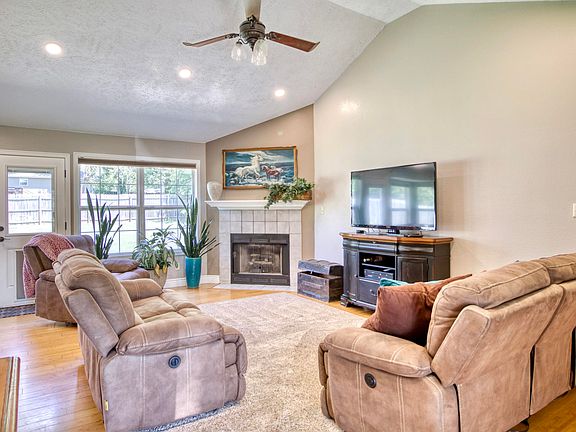 Looking for something preserved and bursting with a wealth of recent updates? This sweet residence is looking for an owner who appreciates charm and practicality. Loads of ample natural light, it boasts a magnificent cathedral ceiling in the living room, a cozy gas fireplace, patio access with a convenient doggy door. The cabinetry radiates newness thanks to a fresh gel stain finish. The generous master suite offers the ultimate comforts - double sinks, two closets, and a full bath. Not to be outdone, the main bath with its spacious layout has been updated alike, creating a striking balance between aesthetic modernity and functionality.From doors to plumbing hardware, lots of details in this house have been replaced to evoke the feeling of a new home. Plush carpets in all bedrooms that add volumes of comfort. The center of this home, the oversized kitchen has a bounty of cabinets and is equipped with a water filtration at the sink and expansive pantry. The prior third car bay has been ingeniously reimagined into a utility-focused laundry/mud room, equipped with garage access, monstrous storage closet, and cabinetry with pullouts. Adding to the appeal of this unique layout, is a flexible family room, den, or office space it also has an area perfect for a recycle station, or pet food supply center leading to the garage. The hidden treasure- a garage floor ingeniously conceals a sunken storm shelter. This is a rare and fascinating feature that doesn't compromise your parking space!Energy-efficient upgrades have not been overlooked, with the seller having added LED can lighting throughout the house. The backyard completes this home with an inviting patio, a handy storage shed, and the optimum mix of sun and shade courtesy of the northwesterly sun. An RV plug was also added on side of dwelling. Settled in a friendly neighborhood perfect for evening strolls, this well kept residence is waiting for you to call home. Don't let this one get away.