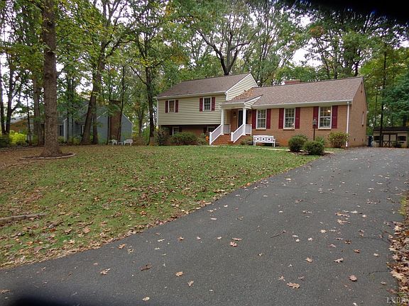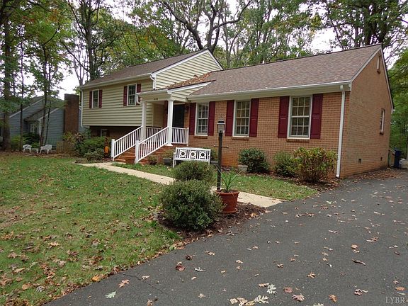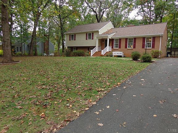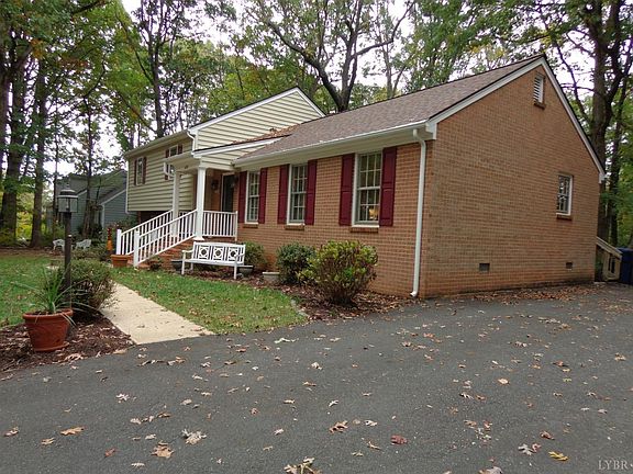 Poplar Forest split level on a pretty wooded lot now priced below county tax assessment !!. Offering a newer York heat pump (6-7 yrs) & a newer Architectural roof(5-6 yrs) this is a nice home. The 1st floor offers a formal LR, DR ,an EI kitchen w/ all appliances staying,3 season sunporch w/heat (door to deck) ,+ a den w/ a brick gas log FP& beamed ceiling.There is crown mold throughout the 1st floor & chair rail in kit & DR.The 2nd level has the master bdrm w/ full mstrbath,2 more bdrms(all w/ laminate flooring) & a full hall bath. The terrace level has a den w/ dry bar, office (possible 4th bdrm) & a laundry room w/ half bath (washer /dryer stay) .The windows are wrapped in aluminum & the exterior is brick & vinyl sided. The front porch has vinyl pickets & handrails The driveway is paved asphalt. Sun porch sq ft not included in total finished sq ft.
