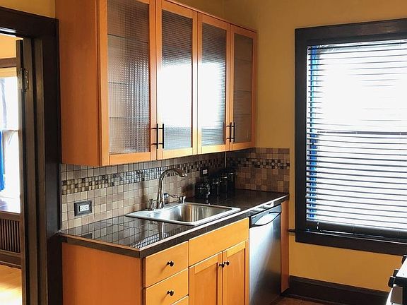 Incredibly gorgeous, very spacious apartment in a beautiful vintage building. Beautifully updated top floor 1 Bedroom, 1 Bathroom, Separate Dining Room, 4 room apartment right across the street from St. Francis Hospital. 9 foot ceilings, vintage style trim, crown moldings throughout, freshly refinished hardwood floors. Kitchen has maple cabinets and stainless steel appliances. Washer/Dryer inside the apartment. Large dining room with french doors that can also be utilized as a home office or 2nd bedroom instead. Tenant pays only for electric !! Heat, cooking gas, water, garbage service, snow removal & landscaping is included in the monthly rent. Dogs and cats are permitted. No more than 2 pets total is allowed. 1 storage locker is included with the apt. Bicycle room near the front entry lobby. Lots of street parking around the building that is zoned for residents. Close to parks and transportation, bus stop is only half a block away, half a mile from the Metra Station, walk to Lake Michigan, near bike paths and shopping. $75 non refundable application fee per adult. Security Deposit equal to one month's rent due with completed application. $300 Pet Deposit due at the lease signing for each dog and/or cat.