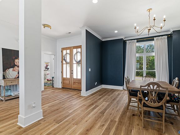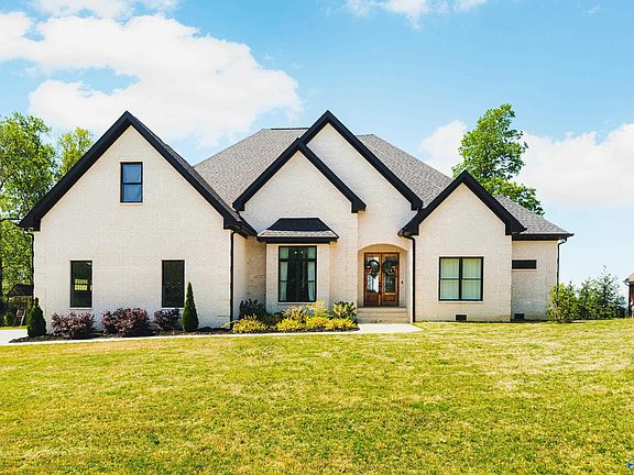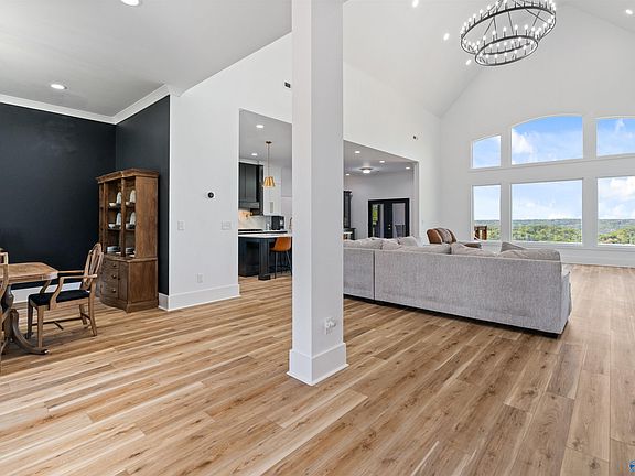 Unbelievable views of Lake Guntersville and the city! Almost new full-brick home built in 2023 with 4 bedrooms, 3.5 baths, and 3,773 sqft. Features LVP flooring, 10ft ceilings, crown molding, recessed lighting, open floorplan, vaulted living area with lakeview window wall and gas log fireplace. Kitchen offers quartz counters, soft-close cabinets, large island, walk-in pantry, black stainless appliances, gas cooktop, pot filler, and convection oven. Luxe master suite with marble floors, soaking tub, tile shower, double vanity, huge closet. Bonus room with HD projector, sound system, theater style seating. Back deck for grilling and taking in the view! Concrete drive and attached 2-car garage.