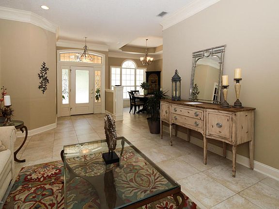 This estate home was custom built for the original owner/developer so no detail was overlooked. In highly desirable and sought after Christopher Cove. Private cul-de-sac location. Stately Live Oaks. Custom tile throughout most + crown molding in living areas & Master BR. Formal Liv & Din. Rooms + Great Room w/wood burning fireplace. Large gourmet kitchen real stone quartzite countertops, high end appliances & lots of cabinets + additional breakfast area. Really striking office with many builtins. Master bedroom is a true retreat with it's own gas fireplace, new carpet, double trey ceiling, double closets & large spa-like bath with marble floor! Huge 2nd floor bonus room with wood plank ceiling, large bath and has spectacular views of St Johns river! Screened in-ground pool just outside indoor Lanai/ Florida room. 2nd screened lanai is a wonderful entertainment area w/summer kitchen & river views. Courtyard entry 3-car garage. New roof 2020. Central vac system, sprinkler system fully fenced yard & more!