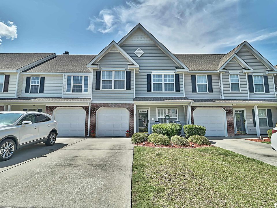 Beautiful 3 bedroom, 2.5 bath townhome in sought after Riverbend community. Walk in the front door to the spacious living room with open concept to the kitchen. Off the kitchen is a den/office/dining room with cathedral ceiling - great extra space! Kitchen is equipped with stainless steel appliances, granite countertops, and a bar area that can be used for desk or extra dining space. Enter the enclosed porch with Eze-Breeze windows from the kitchen. Patio and nice fenced-in yard for your pets. Upstairs is three bedrooms, two baths and laundry room. Large master bedroom with walk-in closet, and bath with dual sinks and shower/tub combo. No carpet - hardwood and laminate flooring throughout with tile in baths. And you have a one car garage! Whether you want to enjoy your coffee on the front porch or enclosed rear porch or take a walk to the riverfront, this location is amazing. Riverbend amenities include a community pool, clubhouse, riverfront area to grill, gazebo, and day dock. Close to shopping, dining, and just a short drive to the beach. You will be right at home here!