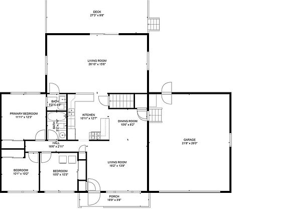 Step into this 3 bedroom 1.5 bath Ranch on cul-de-sac lot. Updated kitchen with quartz counters, sizable breakfast bar, 42" cabinets, tile flooring, beautiful ceramic backsplash. Great room addition on the back of house with slider to the 27' x 10' composite decking. One of the bedrooms currently has a washer and dryer which could easily be removed. 2 car garage with service door to rear of property. Exterior is virtually maintenance free with the brick front, vinyl siding and enclosed soffits and facia. Lot is 1/3 acre, fenced in back and lined with trees across the rear creating a nice private lot.