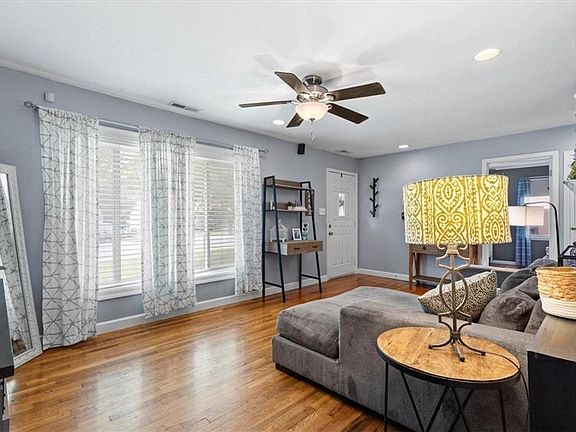 Fabulous JoCo opportunity under $250k! This delightful Olathe ranch offers convenient main-floor living with gleaming hardwood floors and abundant natural light throughout. Pride of ownership evident in every room! The primary suite boasts a fully renovated bathroom with a spacious walk-in shower, double vanities, and a trendy barn door for added character. The roomy kitchen is highlighted by two-toned cabinets and tile floors, and flows seamlessly into the dining area. This home features two additional bedrooms and full bath on the main floor, providing ample space for family or guests. The large backyard is an entertainer’s paradise, complete with a fire pit, pergola, and a wooden deck perfect for gatherings. You'll also find two sheds equipped with electricity, ready for your daily storage needs, plus an oversized private driveway that can accommodate an RV if needed. Enviable access to I-35 and just minutes away from the shops and restaurants on Santa Fe Street. Walking distance to Ridgeview Elementary School and feeds into Olathe North High School. Don’t miss out!