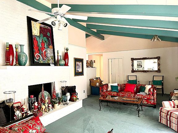Mid-Century Modern home designed by J.E. Staub and built by Davis Construction. Vaulted ceilings with exposed beams in most all rooms, tongue & groove hardwood in most all rooms & bedrooms. (currently under carpet) Finished basement bonus room with cedar walls & beams, kitchenette, and two brick accent walls. 2 gas fireplaces. Large wood deck. Groomed lot in a beautiful wooded setting. Custom built storage house.