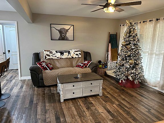 Beautifully updated home at the edge of town includes an open living room and kitchen featuring a spacious island with lots of storage and bar seating. You'll enjoy the view of the large backyard from the kitchen sink window and appliances are included that complement the white shaker cabinetry. Split bedroom floorplan includes the Master Suite with walk-in closet on the north end and 2 additional bedrooms and full bath on the south end. Also includes gorgeous luxury vinyl plank flooring, recessed lighting, expanded main floor laundry, updated landscaping, and storage shed.