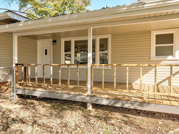 Adorable!! Remodel to include: NEW flooring, paint, remodeled kitchen with granite, remodeled bath, NEW water tank, fixtures, newer roof, newer vinyl windows, NEW garage door. Very nice shed, fully fenced, carport & spacious deck front porch!