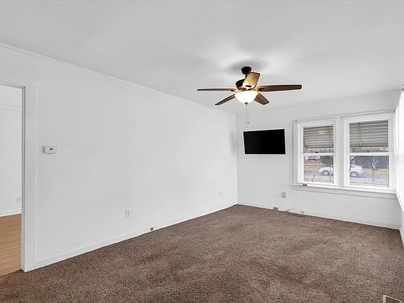 Great starter home or investment property! 3 brdrm/1 bath and all appliances stay, including counter microwave and washer/dryer. Enter the 2-car garage, with automatic openers, from the alley. Fenced side yard. Carpets cleaned and ready for move in. Butcher block in kitchen along with mounted TV on wall sell with property. Home and all appliances sold AS-IS.