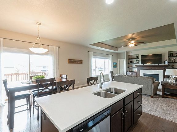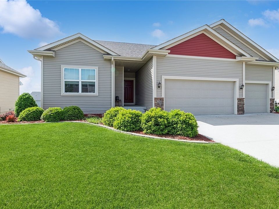 Immaculate one owner 3 bedroom/3 bath walkout ranch quietly tucked in the Meadowlark South neighborhood of Grimes. Inviting open concept floor plan with lg family room/gas fireplace with built-ins. Perfect for gathering with family/friends. White kitchen with quartz countertops, SS appliances, pantry and plenty of cabinets/storage. Off the kitchen is a dining area with sliders to a nice deck and landscaped backyard that is a welcome distance from your backyard neighbors. Two bedrooms & a full bathroom are located at the front of the home while the primary suite is situated more privately towards the back of the home. Primary ensuite has double vanities, shower and walk in closet. Large drop zone and laundry room with cabinets are off the garage. Walkout LL is partially finished with drywall and a ¾ bath (potential layout for a family room/add?l bedroom, workshop with add?l outlets and more storage) . New roof/downspouts - 2021. Easy interstate access, close to trails and parks. Don't miss the opportunity to make this house your home.