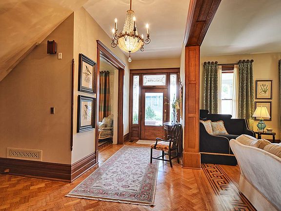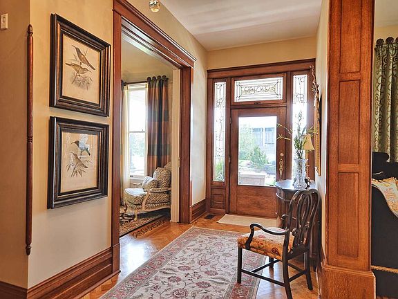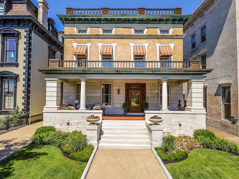 Own a part of Evansville history! 408 SE Riverside Drive, aka the Woolley House, is located in the Riverside Historic District, which has the distinction of being one of Indiana's largest intact historic districts. Originally platted in 1819 as the Upper Enlargement, it became the place to live and was the primary residential area of the city by the turn of the century. This home has been lovingly renovated using the finest in materials, and yet has many original components including the hardwood floors, hardware, and stained glass windows. Custom wall coverings, marble fireplaces and baths, beamed ceilings, and fine art glass in the windows and front entrance are examples of this home's elegance. A gourmet kitchen has been added featuring granite counters, custom cabinets by G McMichael, a Wolf 6 burner gas range, a Sub-Zero refrigerator, and KitchenAid stainless steel ovens. Enjoy a master suite with walk-in closet, granite soaking tub and a walk-in shower with dual shower heads. Originally designed as a ballroom, the open third floor has a half bath and many possibilities. A full basement with storage areas. Three heating and air systems for comfort. A beautiful courtyard with limestone patio leads to a re-built carriage house garage with second floor that also has many possibilities. Professionally landscaped by Dallas Foster.
