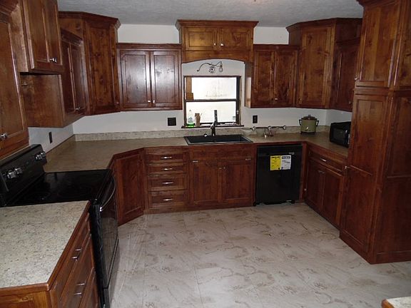 Needs some stuff but also offers great amenities for the price! 2300+ square feet all on one level out in the country on small acreage, Custom Knotty Alder cabinets and vanities, nice appliances, nice floor coverings, shop building, spacious rooms to roam.